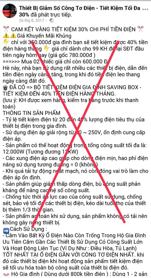 Khách hàng sử dụng điện không mua và không sử dụng các thiết bị tiết điện thông minh được quảng cáo trên mạng xã hội