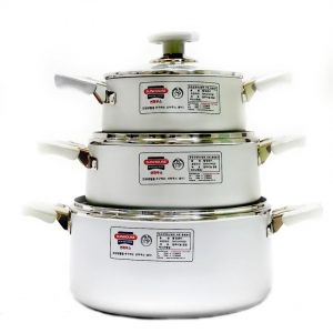 Vật liệu làm bộ nồi là nhôm nguyên chất có độ dày 2,45mm được nhập khẩu từ Hàn Quốc