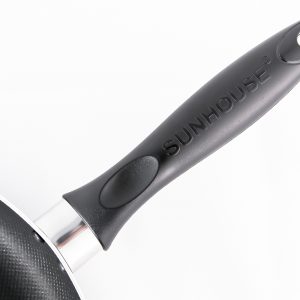 Đặc tính sản phẩm Màu sắc Ghi đen Kích thước 18 cm Chất liệu Nhôm tấm dày 2,4 mm Nắp chảo Không có Lòng chảo chống dính Bề mặt chảo phủ lớp chống dính whitford (Thương hiệu chống dính hàng đầu thế giới) Đáy từ Không Tay cầm Làm từ nhựa chịu nhiệt siêu bền Đặc điểm khác Bên ngoài sơn lớp sơn màu chịu nhiệt Thông tin chung Thương hiệu Sunhouse
