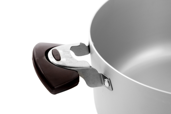 Quai núm: Được nhập khẩu từ Hàn Quốc, chế tạo từ nhựa cao cấp có khả năng cách nhiệt và chống nóng tốt, chống bỏng trong quá trình đun nấu, di chuyển. Quai được tán đinh chắc chắn vào thân nồi, giúp quá trình di chuyển dễ dàng, tiện lợi.
